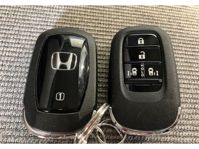 【リア両側パワースライドドア】リモコンなどで自動開閉。Hondaスマートキーを携帯していれば、軽い力で解錠とドアオープンが行えます。半ドア状態まで閉めると、自動的に全閉する機能付き。