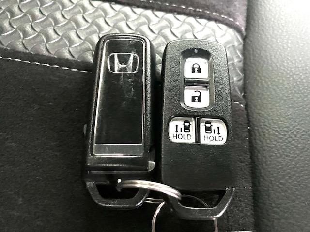 【リア両側パワースライドドア】リモコンなどで自動開閉。Hondaスマートキーを携帯していれば、軽い力で解錠とドアオープンが行えます。半ドア状態まで閉めると、自動的に全閉する機能付き。