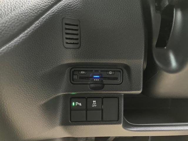 【リア片側パワースライドドア】リモコンなどで自動開閉。Hondaスマートキーを携帯していれば、軽い力で解錠とドアオープンが行えます。半ドア状態まで閉めると、自動的に全閉する機能付き。