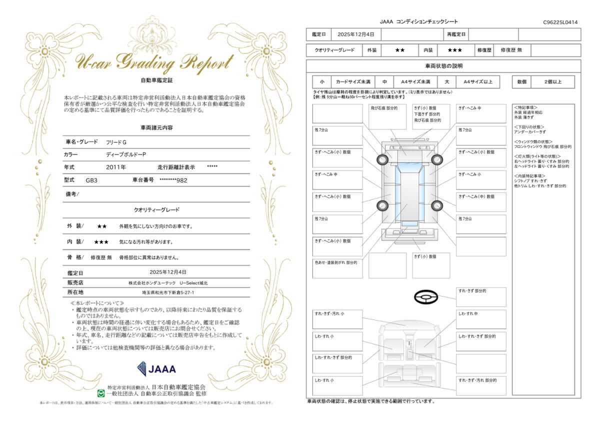 | 走行距離 | 12.3万km | 修復歴 | なし |