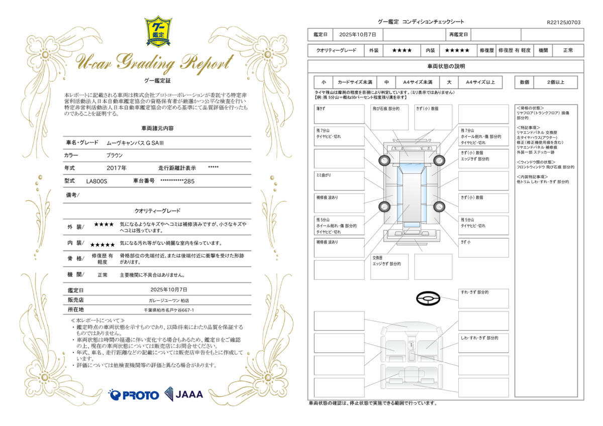 車台番号下3桁 | 285 | 全体のサイズ | - / - / - |