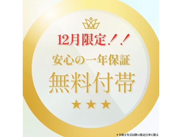 R7年12月だけの特別企画!通常3ヶ月・3,000kmのベース保証を、令和2年式以降の低走行車に限り【1年間長期保証無料付帯】納車後1年間は工賃・部品全て含む保証となります。