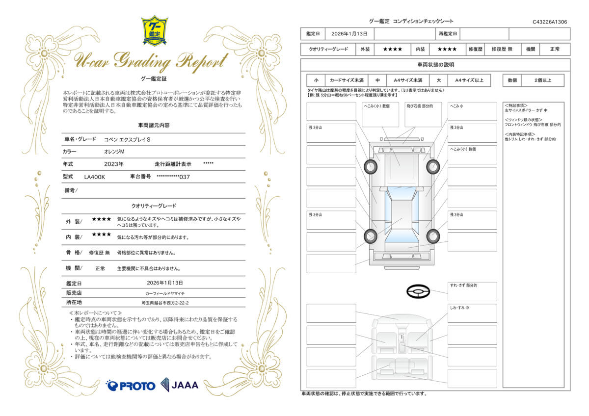 | 走行距離 | 3.6万km | 修復歴 | なし |