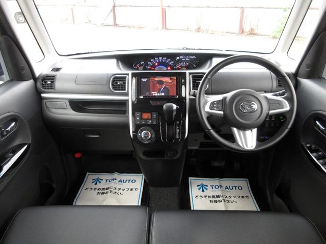 ダイハツ タントカスタムRS トップエディションSA ターボ ワンオーナー メモリーナビ フルセグ Bluetooth バックカメラ ETC ハーフレザーシート LEDヘッドライト 衝突被害軽減ブレーキ プッシュスタート スマートキー ロールシェード