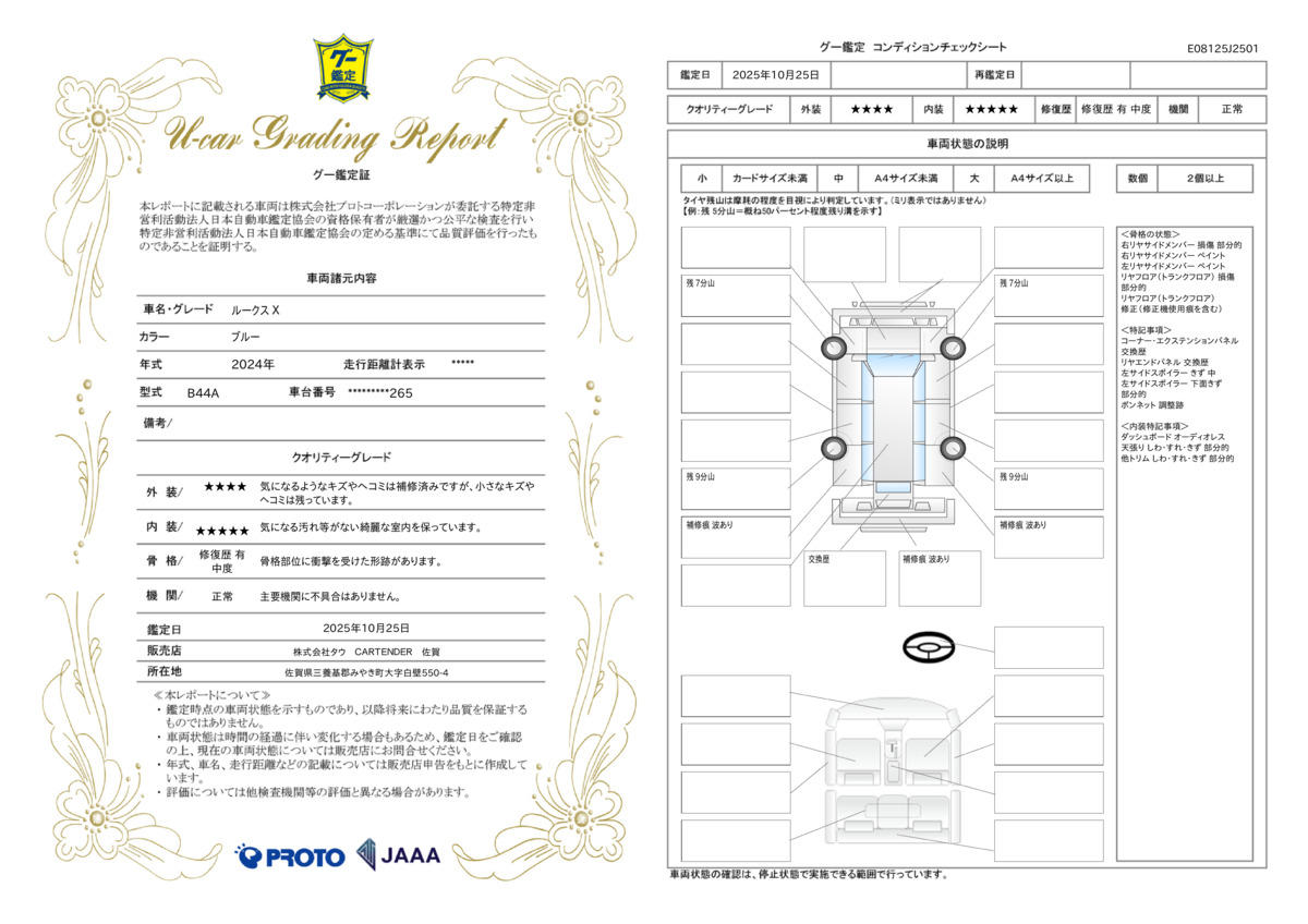 当社は骨格修理を施した車両情報は徹底開示!修復歴車を一目瞭然の画像を掲載いたします。