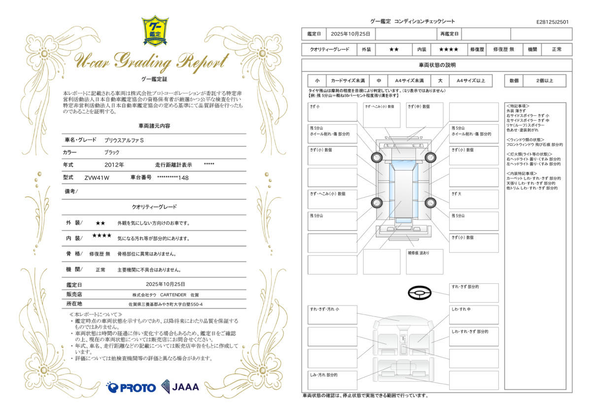 | 走行距離 | 5.2万km | 修復歴 | なし |