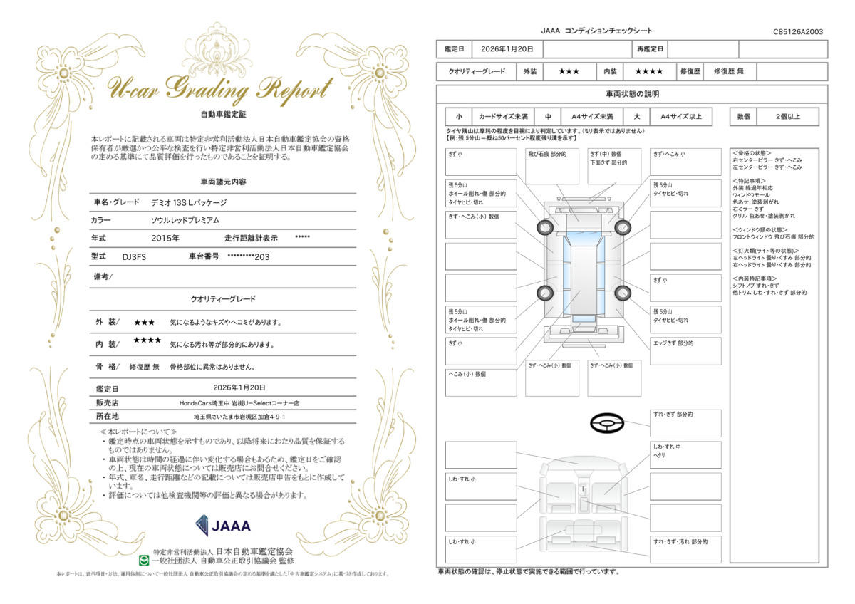 第三者機関が車の状態を厳しくチェックしております!ご不明な点がございましたあら何でもご相談下さい!