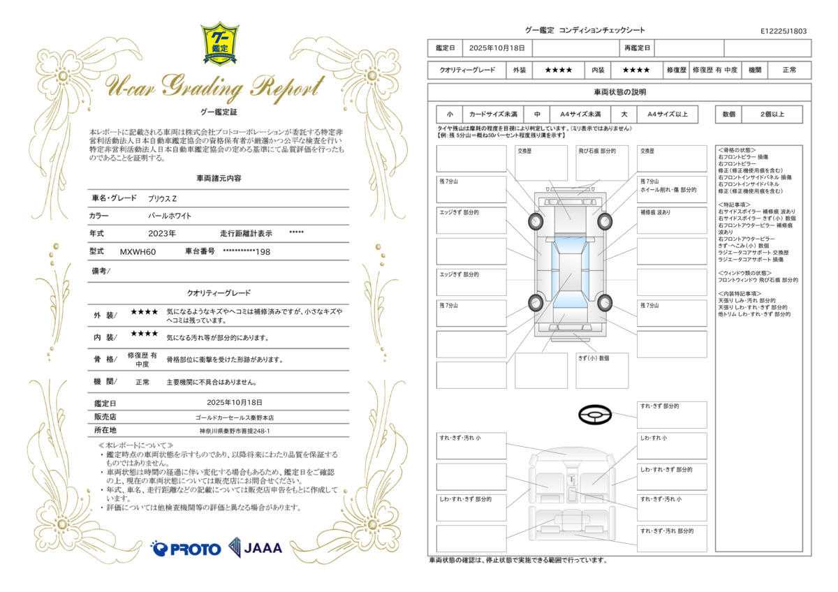 | 走行距離 | 1.8万km | 修復歴 | あり |