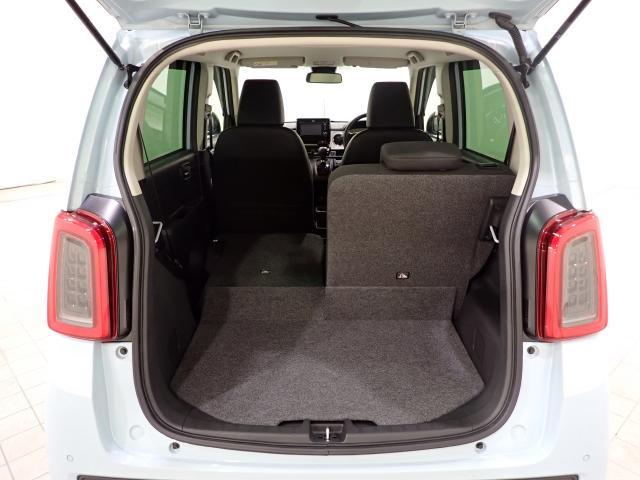 セカンドシートを全て倒したフルラゲッジ状態です。大容量の収納スペースが完成!