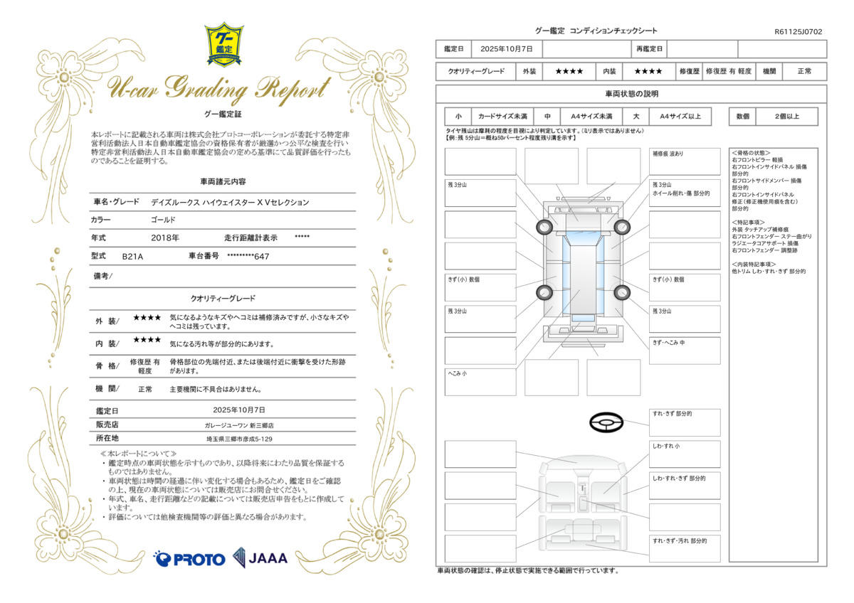 車台番号下3桁 | 647 | 全体のサイズ | - / - / - |