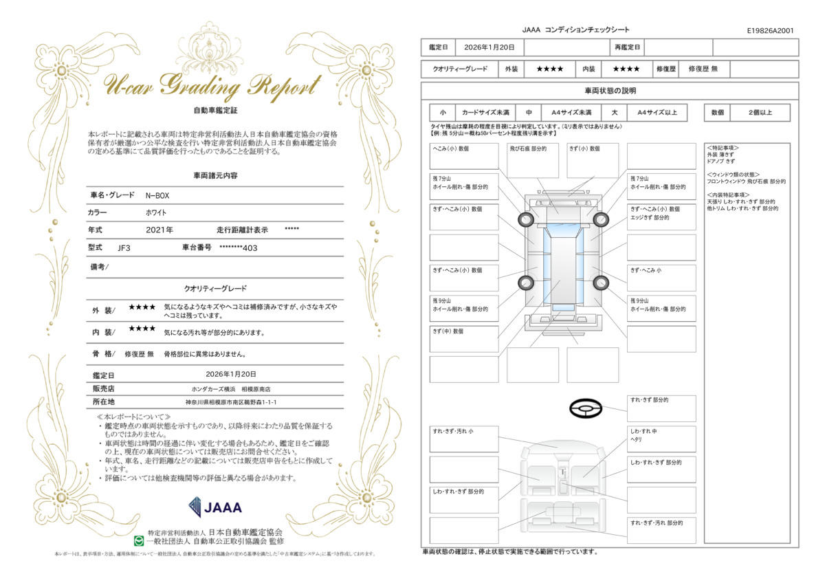 | 記録簿 | ○ | 輸入認定中古車 | ー |