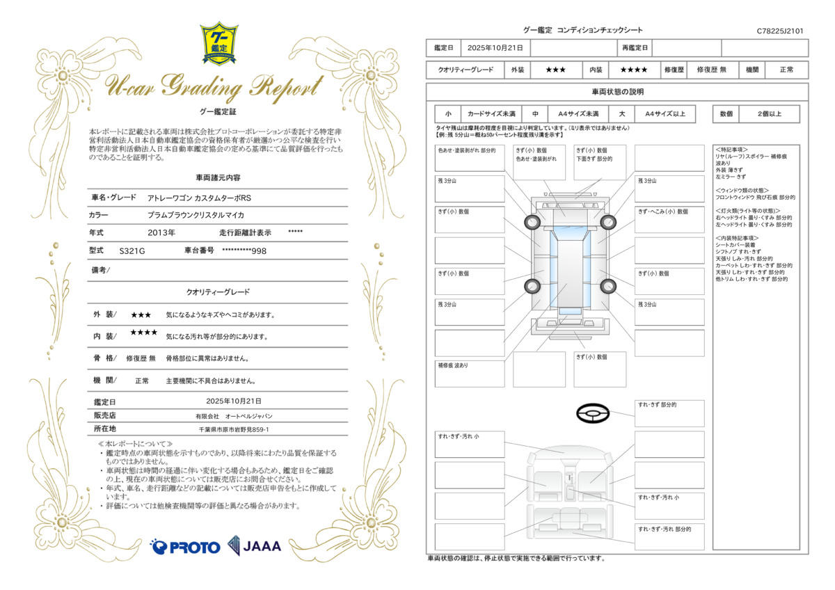 | 走行距離 | 10.2万km | 修復歴 | なし |