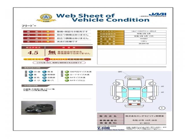 | 法定整備について | U-Select三鷹では、ご成約のお車をホンダカーズ整備工場にて、ご納車までに法定12ヶ月点検または車検整備を実施します!整備代、消耗品代は車両本体価格に含まれております!必要消耗品交換付で安心です。 |