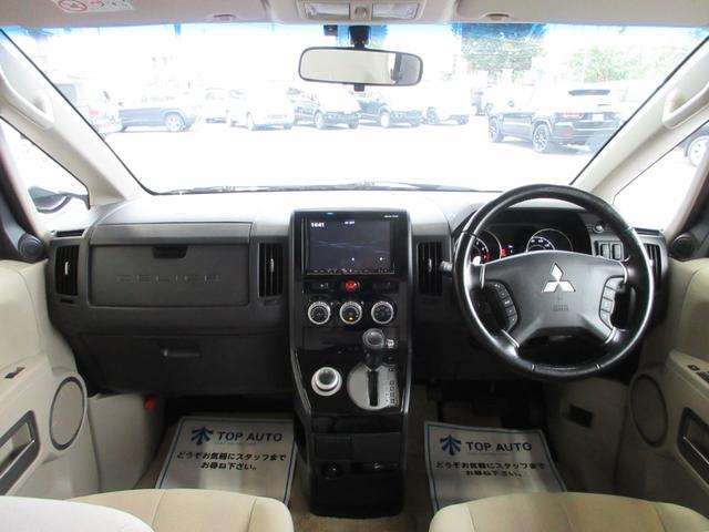 三菱 デリカD:5G パワーパッケージ 4WD 両側電動ドア 社外ナビ フルセグ 後席モニター バックカメラ ETC 音楽録音 ディスク再生 クルコン スマートキー HIDライト オートライト 18インチアルミ マッドガード タイミングチェーン