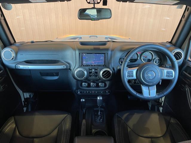 クライスラー・ジープ ジープ・ラングラーアンリミテッドJK 80台限定車 ワンオーナー 社外メモリナビ フルセグTV バックカメラ サイドカメラ 黒革シート シートヒーター ALPINEスピーカー クルーズコントロール MTモード付AT 純正18インチアルミ