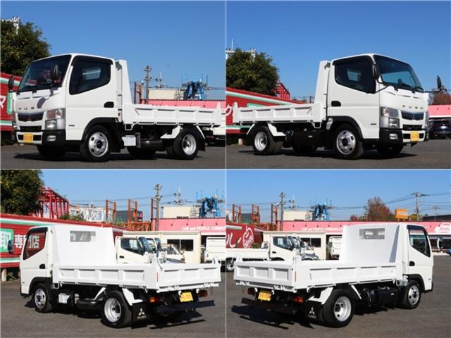 三菱ふそう キャンター全低床ダンプ ダンプ 全低床強化 2トン積 三方開 5速MT3ペダル ディーゼルTB キーレス レーンアシスト 中間ピン2個 新明和製荷台 ETC フォグランプ 電格ミラー 荷台寸法305-160-32