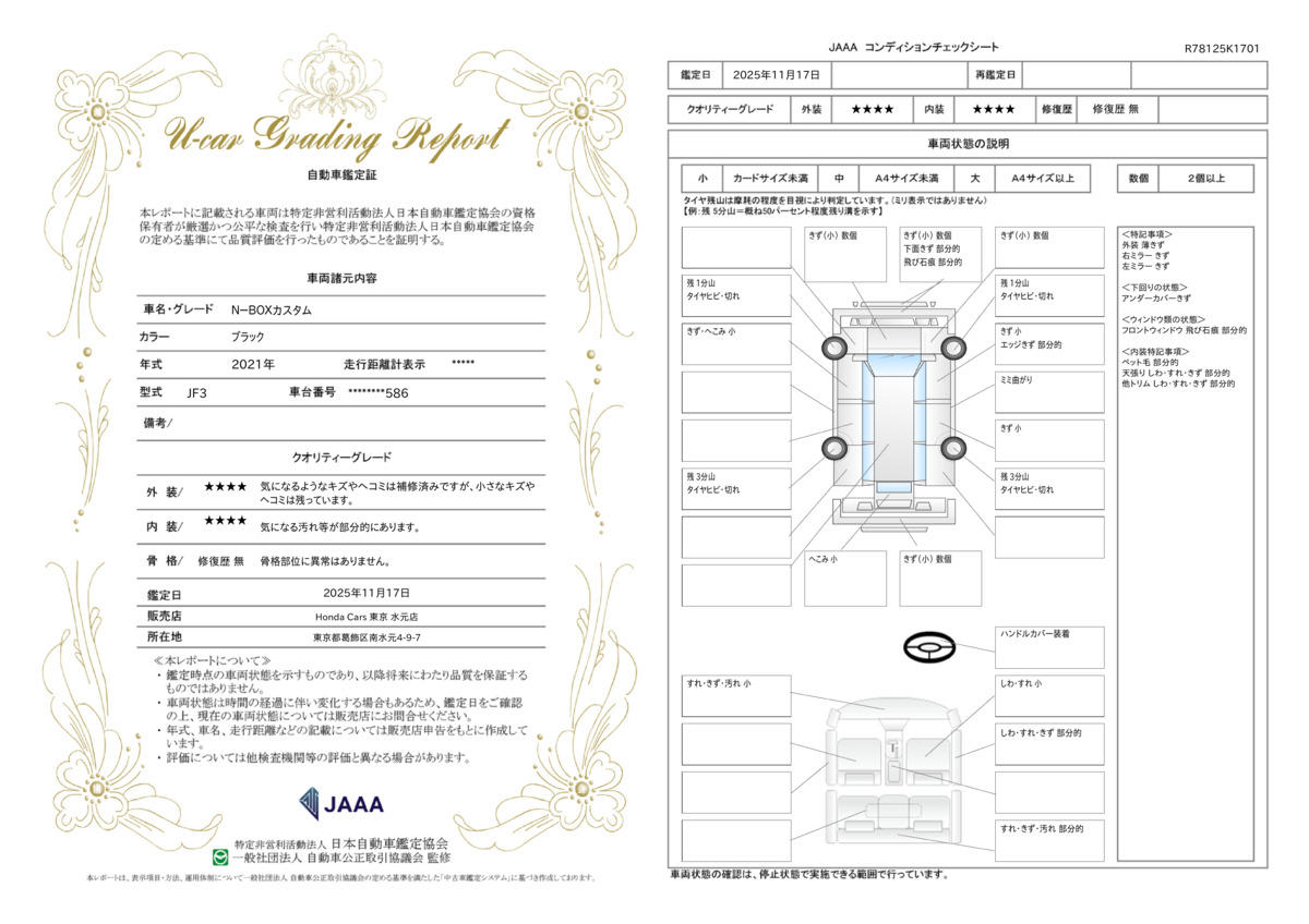 | 走行距離 | 3.8万km | 修復歴 | なし |