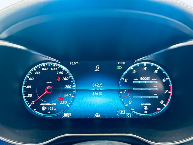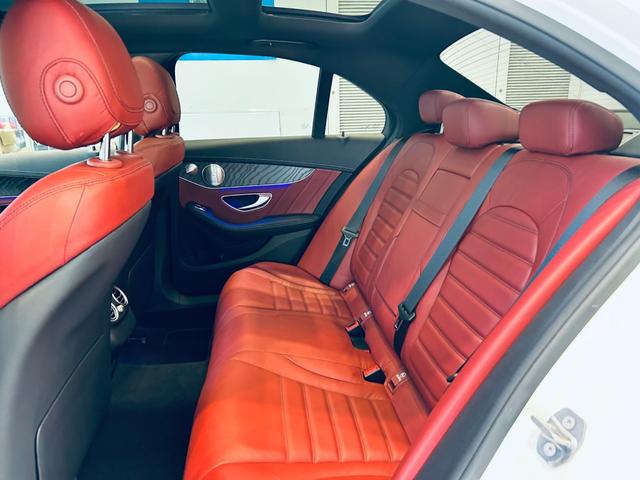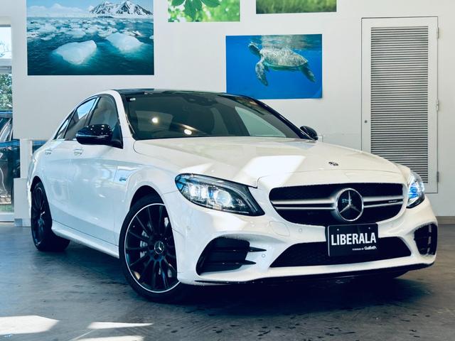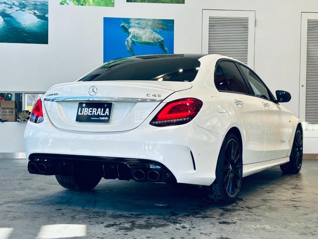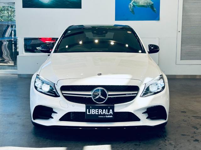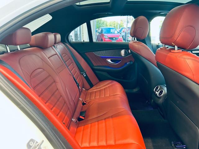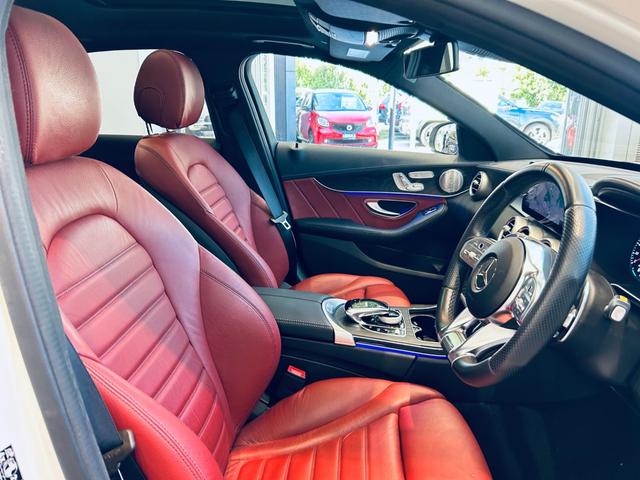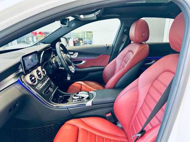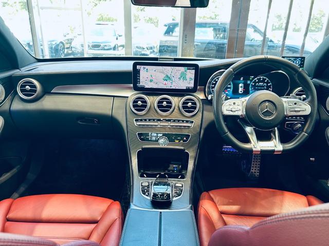 メルセデスAMG CクラスC43 4マチック パノラマSR HUD ACC Burmeste 純正ナビ TV Bカメラ carplay 純19インチAW LED アンビエントライト 電動リアゲート 赤革 メモリパワーシート シートヒーター BSM