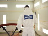 自社塗装ブースで使用している塗料は【STANDOX】です。ディーラーでも使用している塗料です!パール系やメタリックにも対応可能!仕上がりに自信があります!