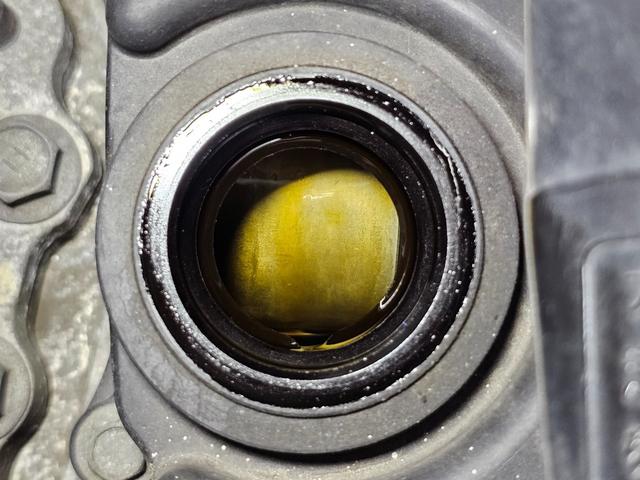 エンジンのオイルキャップを開けたところです。ひどい汚れ無く良好です!