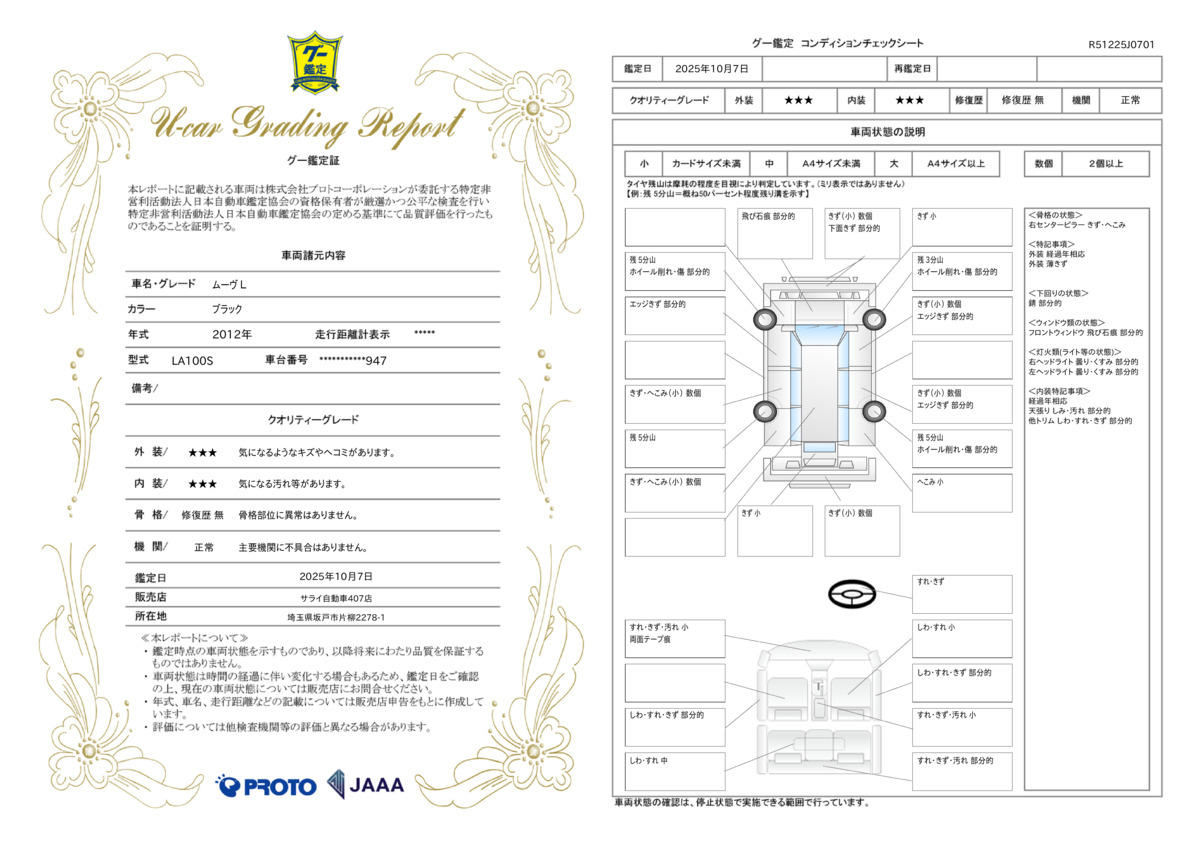 走行距離 | 12.7万km | 修復歴 | なし |