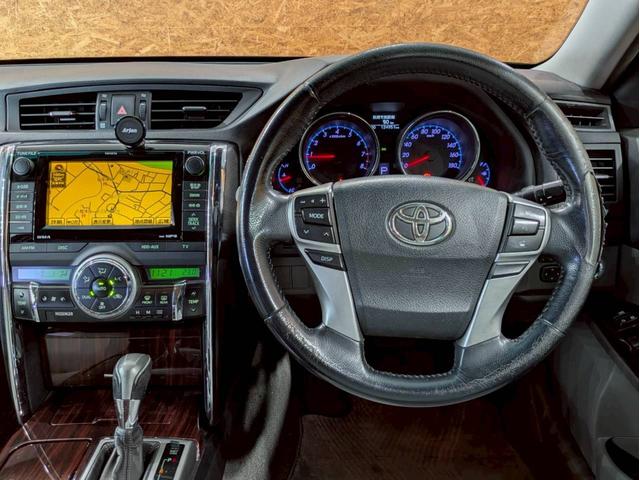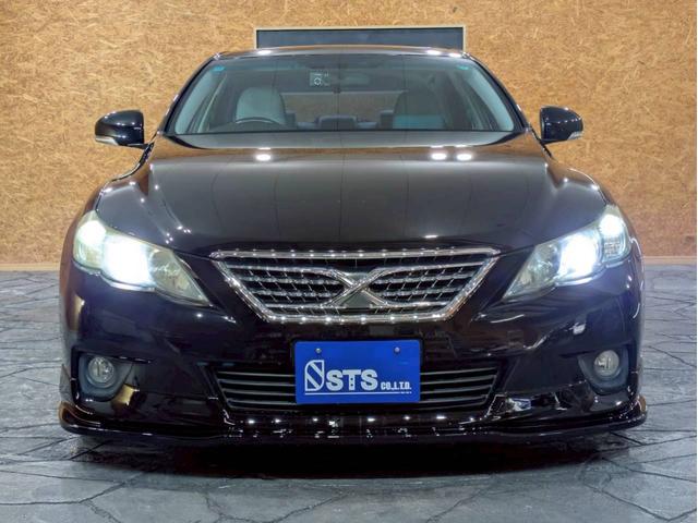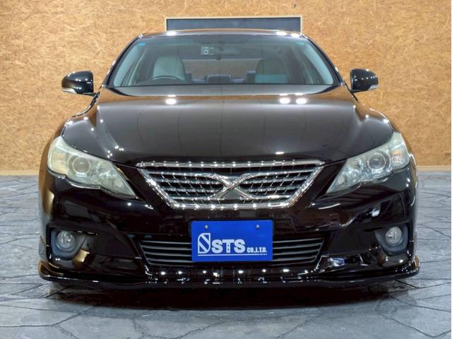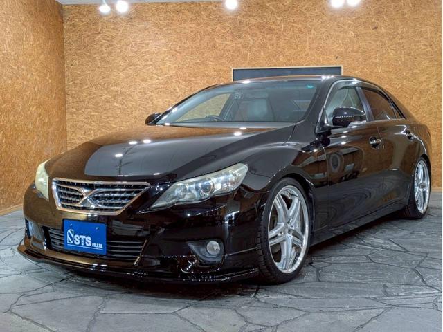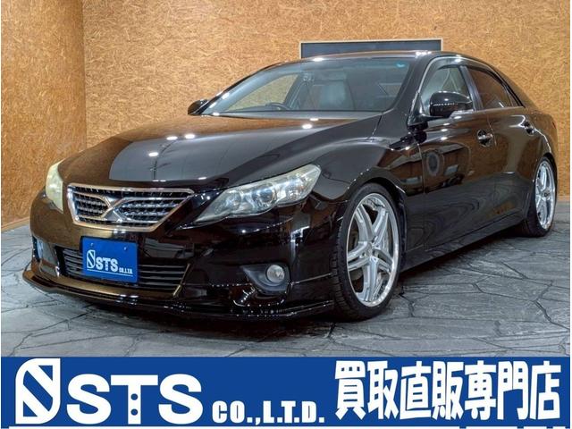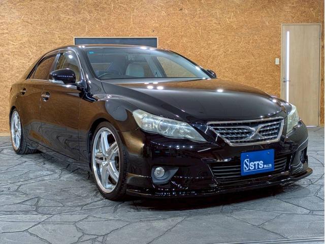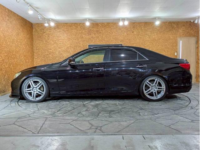 トヨタ マークX250G リラックスセレクション サンルーフ 社外エアロ WORK19インチAW TEIN車高調 HIDライト フォグ 純正ナビ フルセグTV バックモニター パワーシート 白レザー調シートカバー ドラレコ スマートキー ETC車載器