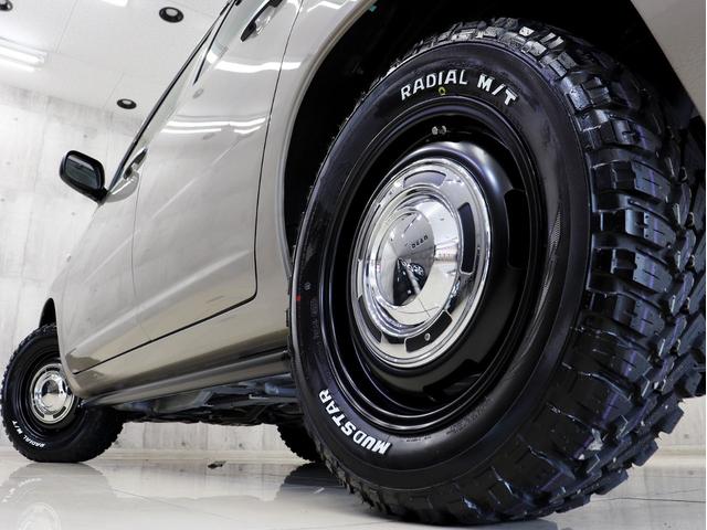 新品社外ホイールに新品マッドテレーンホワイトレタータイヤを装着しアクティブな雰囲気に仕上がりました。