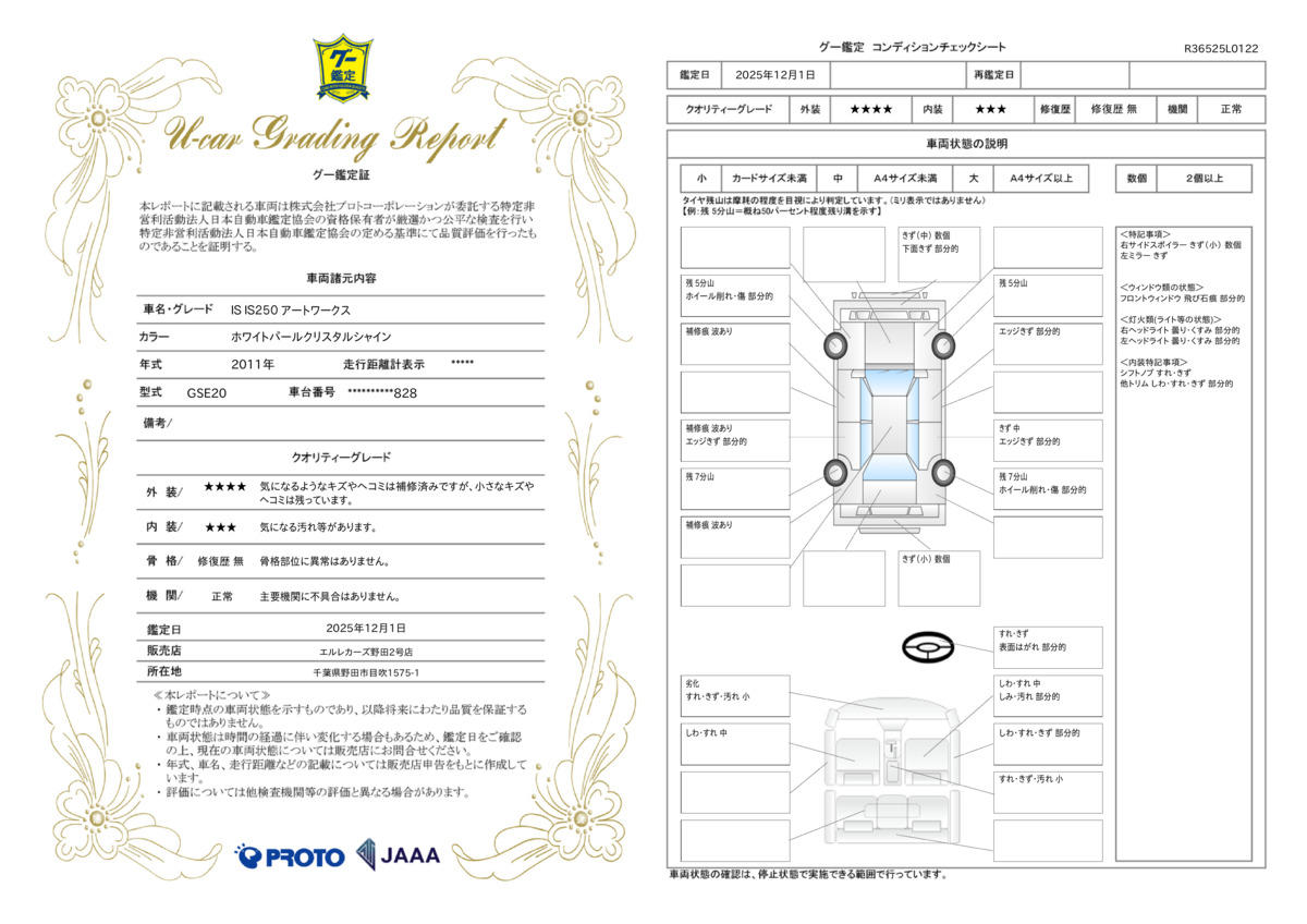 | 走行距離 | 9.7万km | 修復歴 | なし |