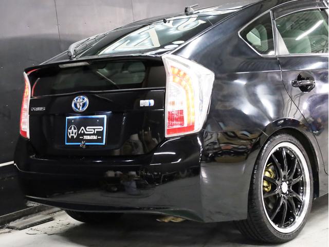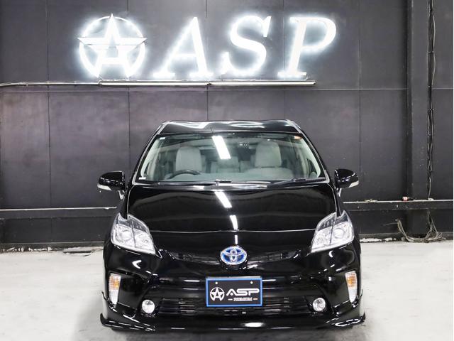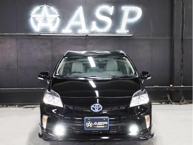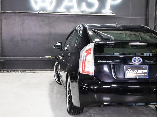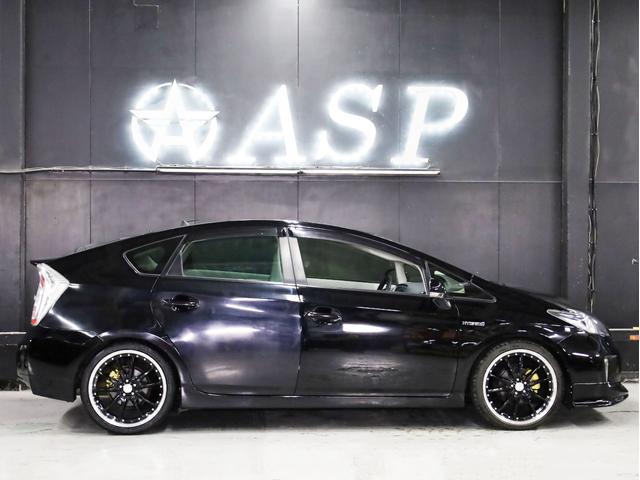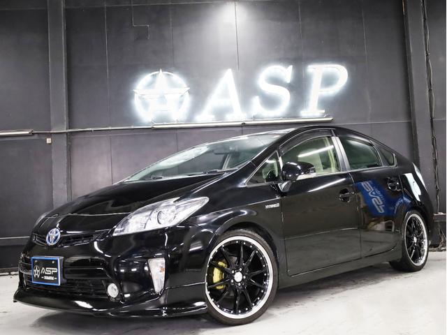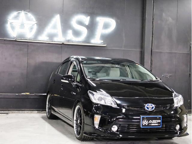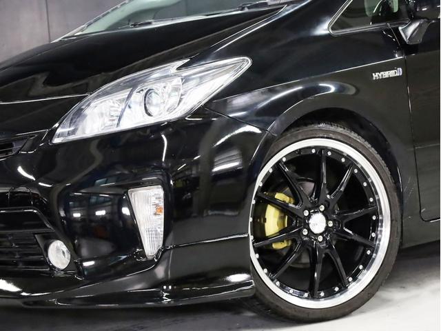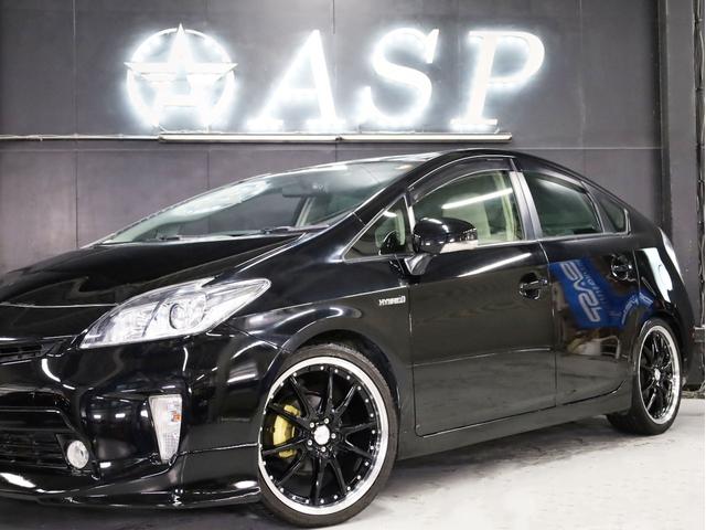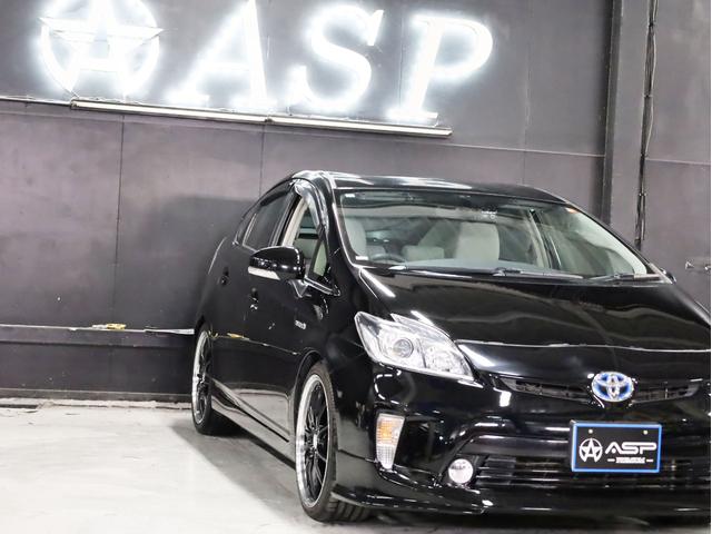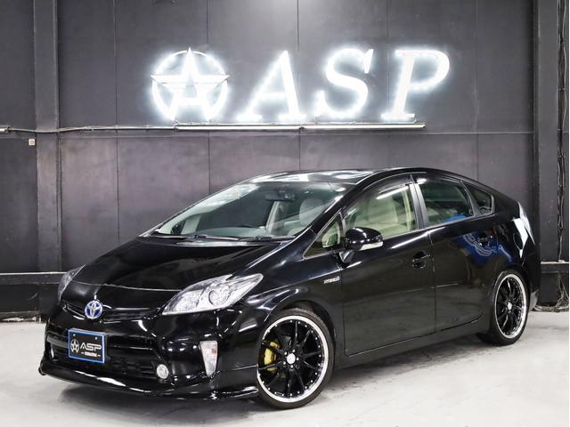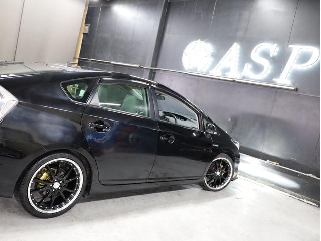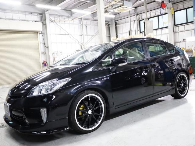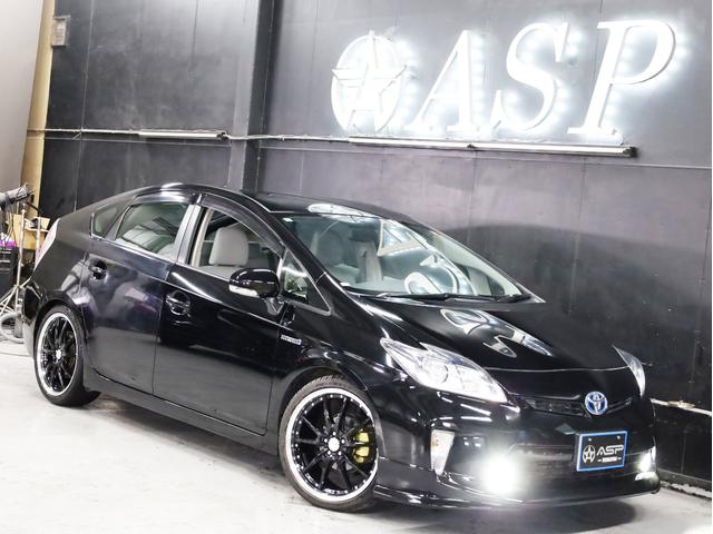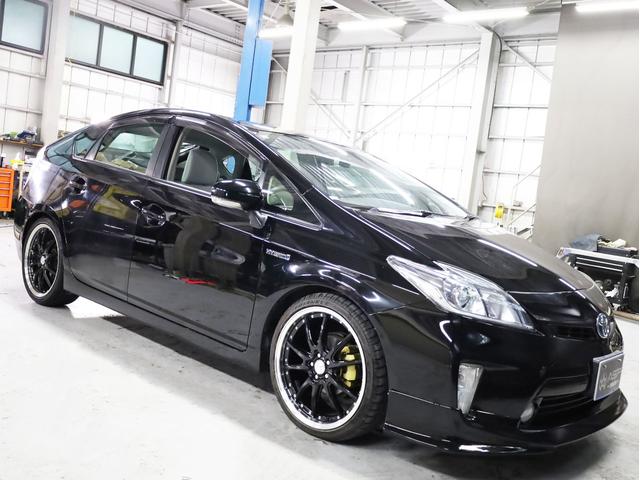 トヨタ プリウスS 後期型 BADXロクサーニ19AW ローダウン エアロパーツ 純正SDナビ 地デジTV バックカメラ スマートキー 黒革調シートカバー 黒木目パネル HIDライト