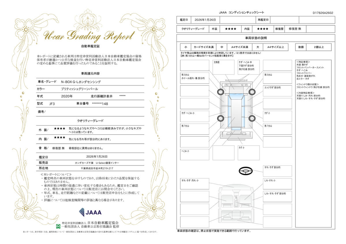 | 記録簿 | ー | 輸入認定中古車 | ○ |