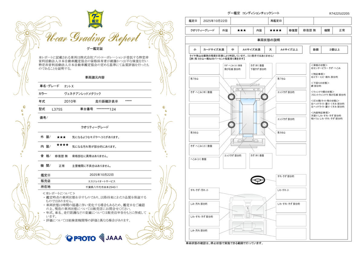 | 走行距離 | 11.0万km | 修復歴 | なし |