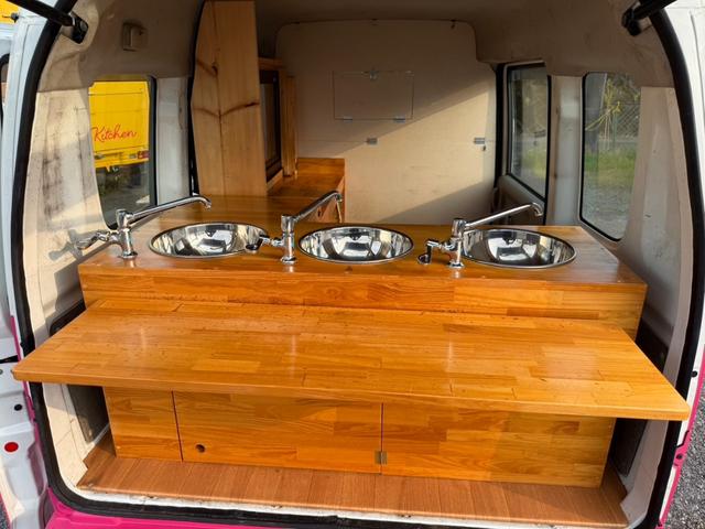 キッチンカー 3槽シンク、販売台、脱着式サッシ、給排水タンク、ワーゲンフェイス