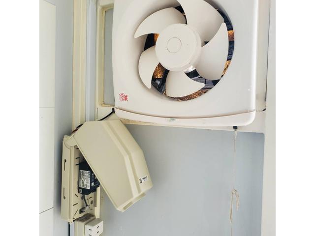 キッチンカー 換気扇、跳ね上げ販売口、外部電源口、庫内スケルトン、移動販売車、厨房機材応談