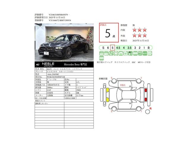 メルセデス・ベンツ CLECLE200 クーペ スポーツ 1オーナー レザーエクスクルーシブP マキアートベージュ革 パノラマルーフ ブルメスター ヘッドアップディスプレイ 360°カメラ パワーシート シートベンチレーター シートヒーター