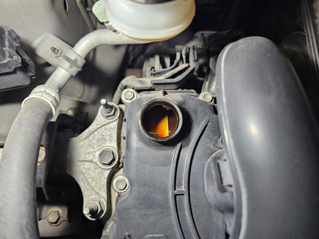 エンジンのオイルキャップを開けたところです。ひどい汚れ無く良好です!