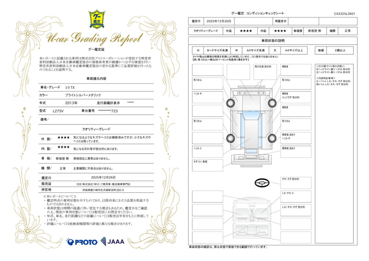 | 走行距離 | 2.5万km | 修復歴 | なし |