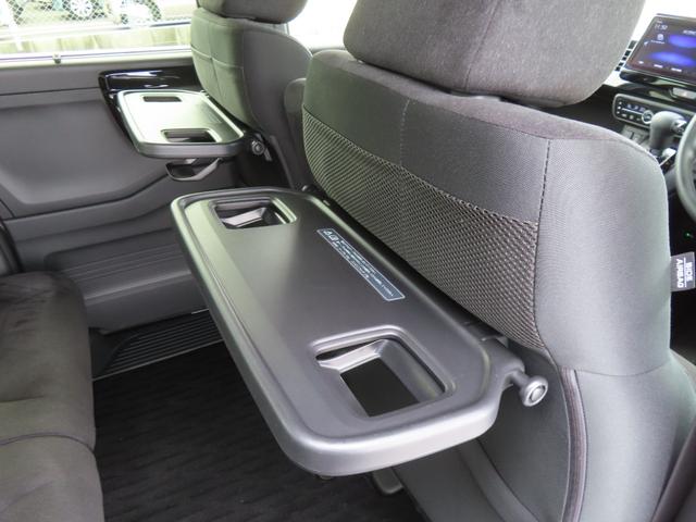 【シートバックテーブル】休憩時のちょっとした小物置きに使える、前席背面の格納式のテーブルです。車内でのお食事シーンにとても便利です。