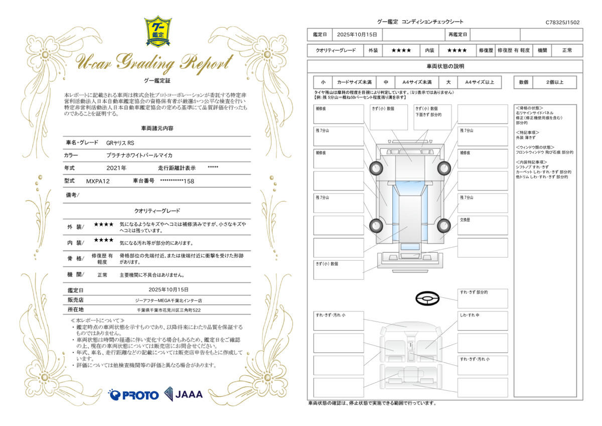 | 走行距離 | 2.7万km | 修復歴 | あり |