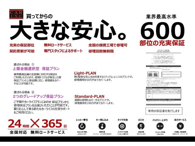 ご納車後も安心の保証展開がございます。初度登録から10年未満の車両を対象に全国でお使いいただける600項目に及ぶ距離無制限かつお財布にも優しい継続型の保証です。