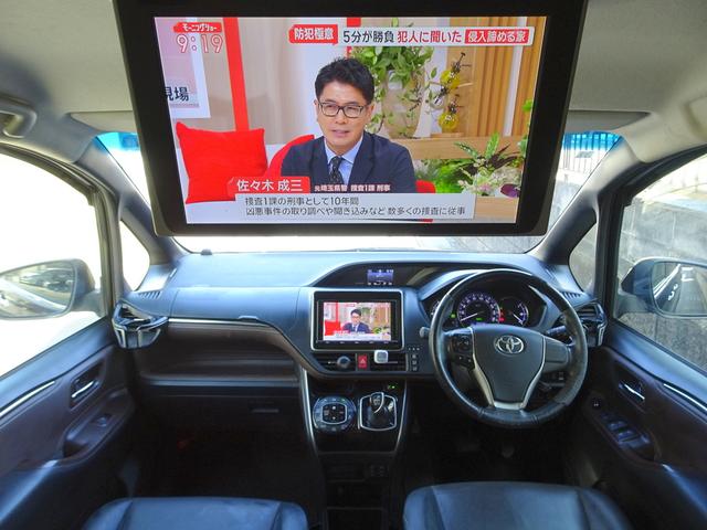フリップダウンTV/DVDモニターが装着されておりTV&DVDの視聴も可能で後部座席の方もロングドライブ時でも退屈しません。モニターも大型モニターで画面も大きく見やすいです。
