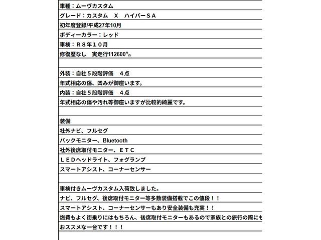 この度は当店のお車をご覧になっていただき、誠にありがとうございます。ぜひじっくりとご検討下さい。気軽にお問合せ・お見積りお待ちしております。