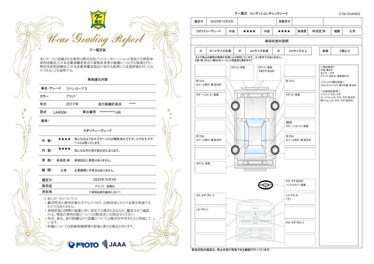 | 走行距離 | 8.8万km | 修復歴 | なし |