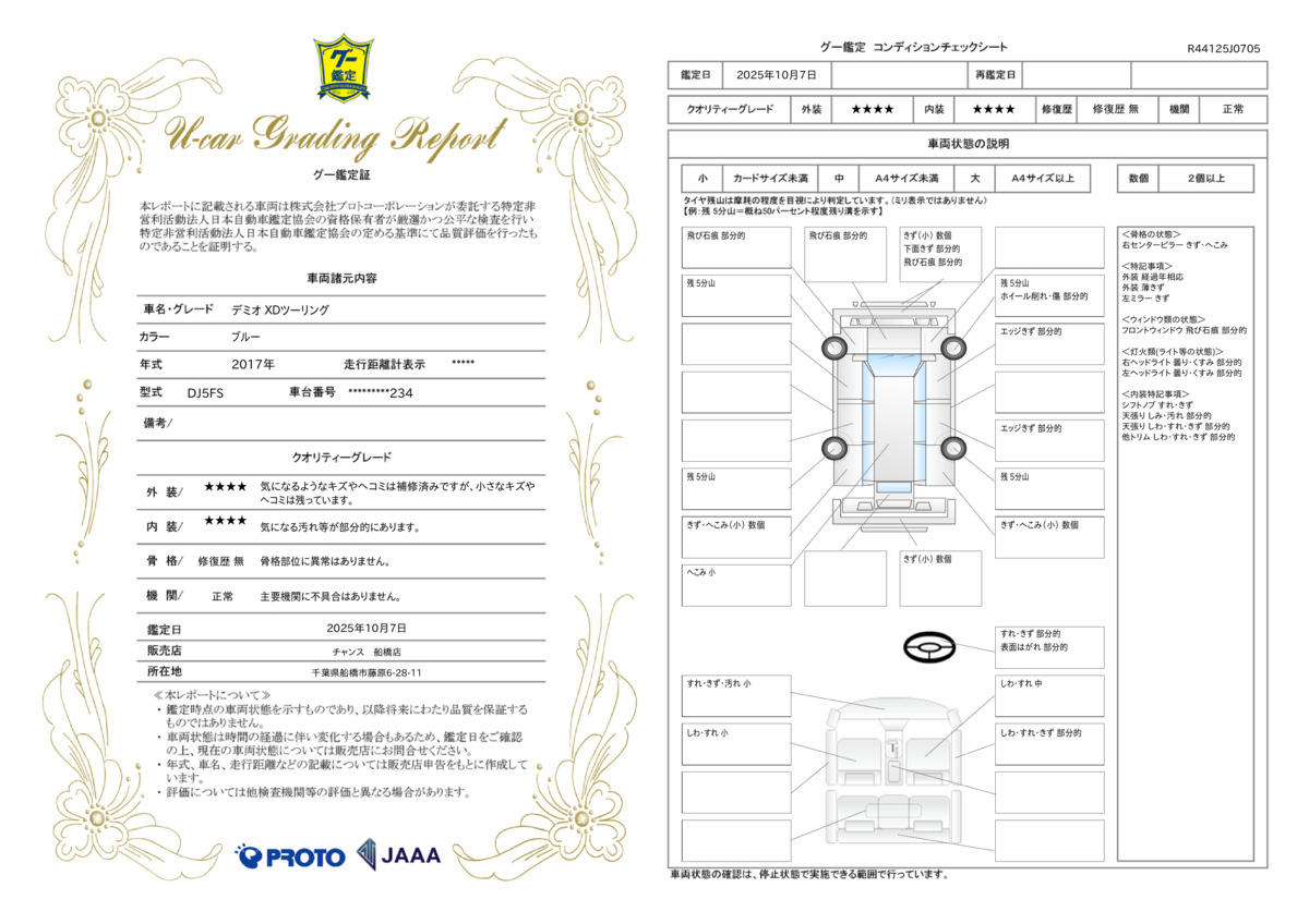 走行距離 | 7.5万km | 修復歴 | なし |