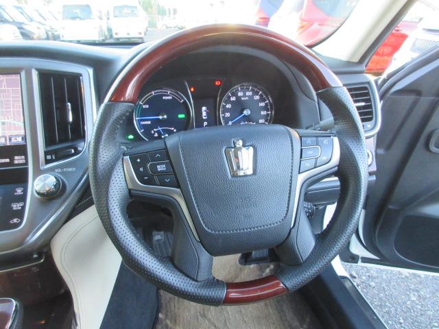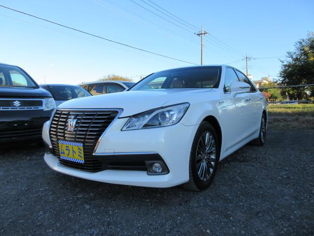 トヨタ クラウンハイブリッドロイヤルサルーン 車検2年付き HDDナビ BluetoothフルセグTV バックカメラ ETC 純正17インチアルミホイール クルーズコントロール 社外ウッドコンビハンドル HIDオートヘッドライト LEDフォグ