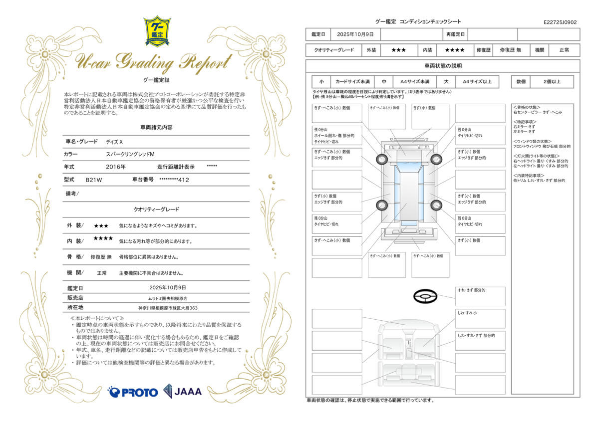 | 走行距離 | 5.3万km | 修復歴 | なし |