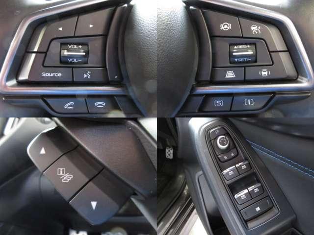 ステアリング部にてオーディオ操作・高速時に一定の速度での走行を可能とする停止保持付レーダークルーズ付です。