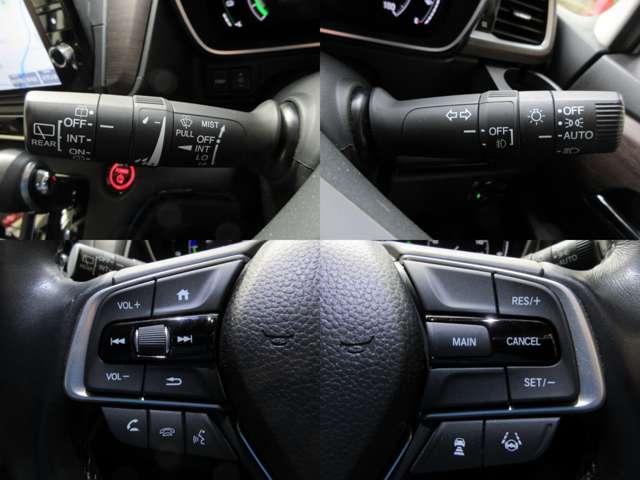 ステアリング部にてオーディオ操作・高速時に一定の速度での走行を可能とする追従型レーダークルーズ付です。