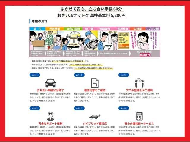【ホリデー車検】 受付からお帰りまで、最短60分!! お客様のお車の状態を実際に見ながら整備士がご説明差し上げます。