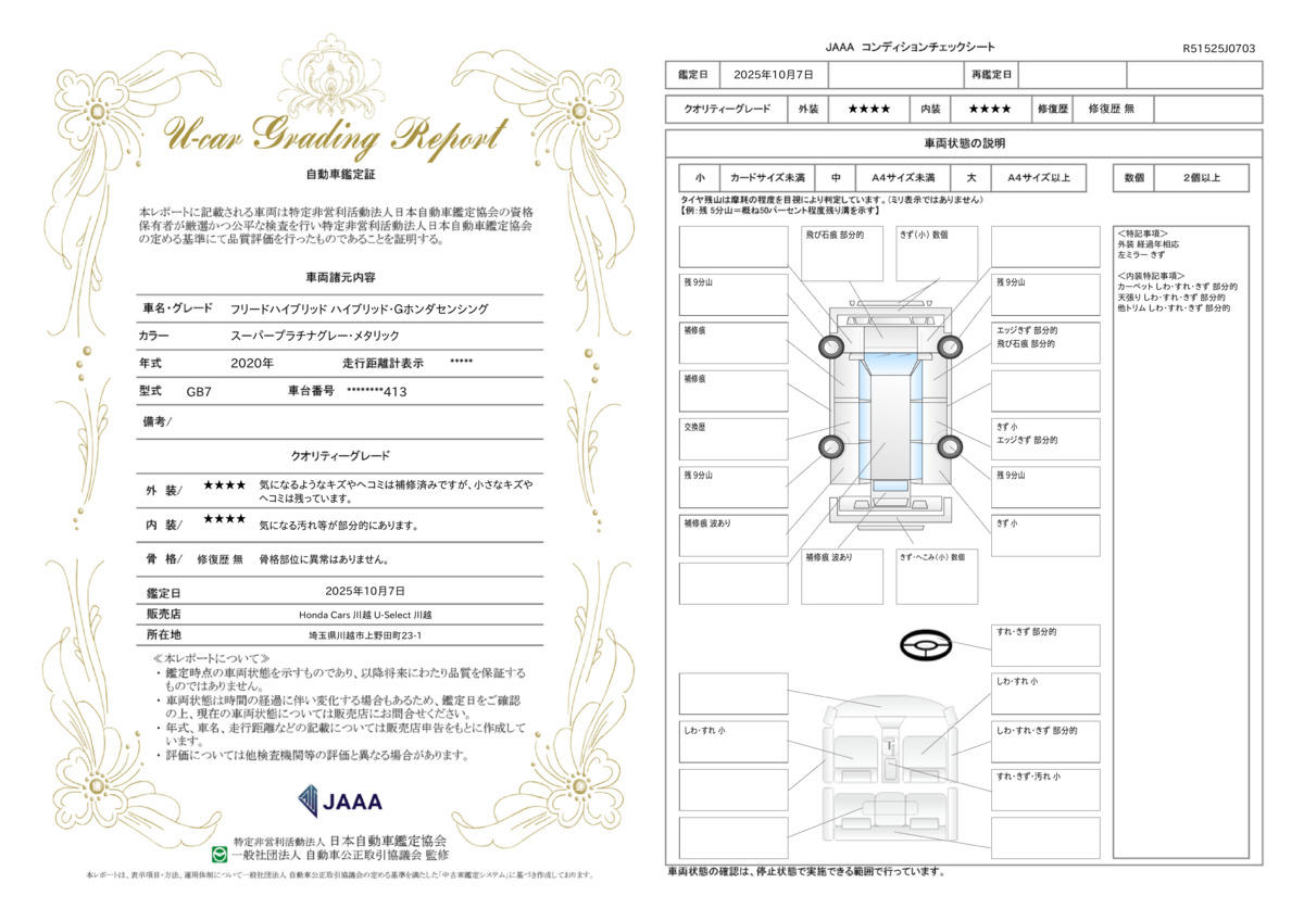 検査内容は評価書としてグー鑑定証を発行しております