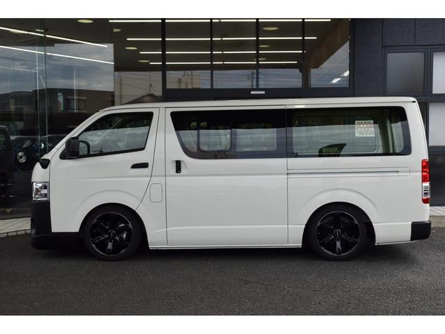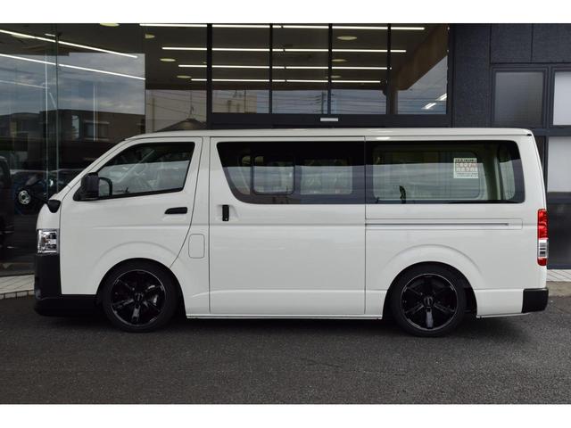 トヨタ ハイエースバンロングDX CRSコントラストパッケージ ローダウン ESSEX18インチアルミ バッドフェイス フロントスポイラー 全周囲カメラ 衝突軽減ブレーキ デジタルインナーミラー LEDヘッドライト コーナーセンサー